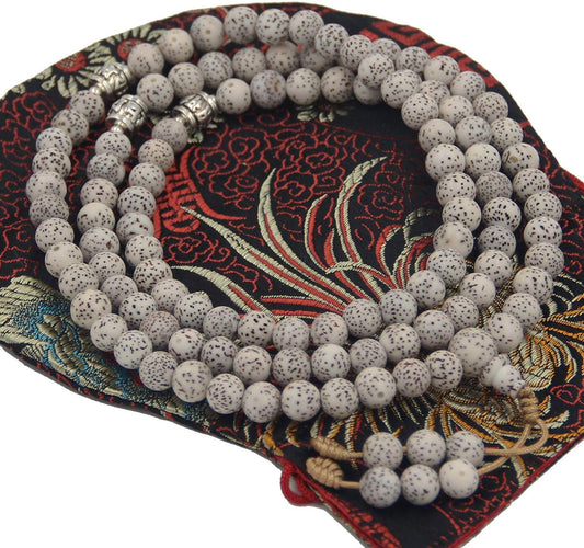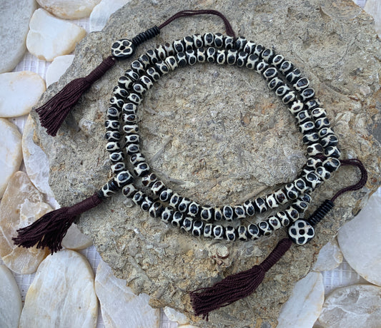Natural Buffalo Bone Tibetan Endless Knot DZI 108 Beads Prayer Mala