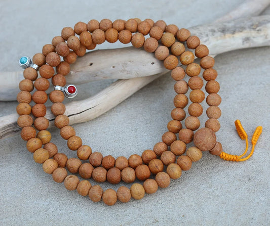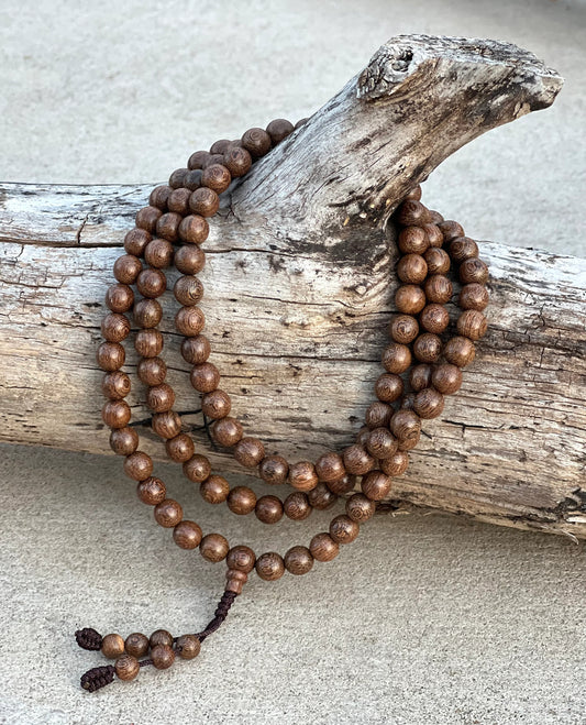 Tibetan Meditation Nyatoh Wood 108 Beads Mala, Prayer Beads, Buddhist Prayer Beads, Wood Mala Yoga Necklace, Hindu Prayer Beads