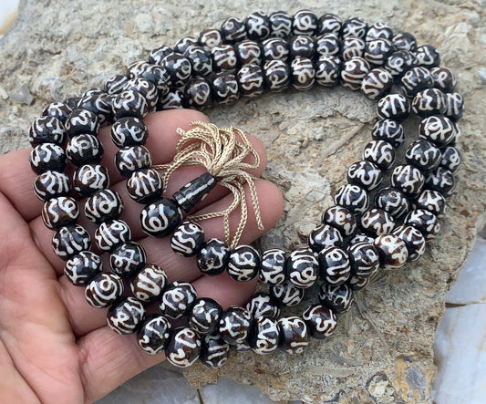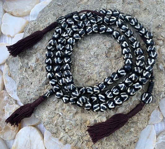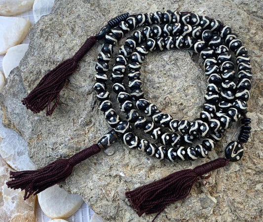 Tibetan Zig Zag DZI 108 Bone Beads Mala With Counter Meditation and Yoga