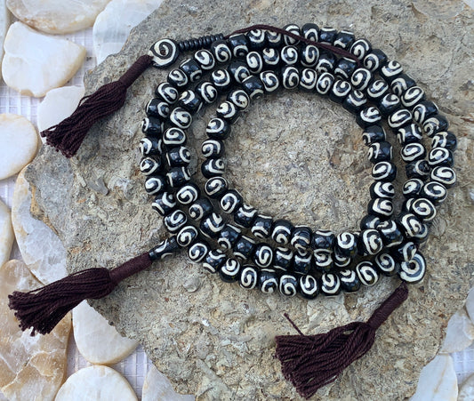 Tibetan Spiral DZI 108 Bone Beads Mala With Counter Meditation and Yoga