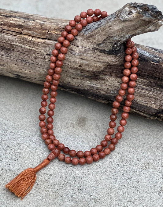 Tibetan Gold Stone Sand Stone 108 Beads Mala Rosary Meditation Yoga - Free Mala Pouch