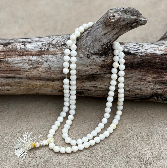 Tibetan Genuine Counch Shell Mala Rosary 108 Free Rosewood Box