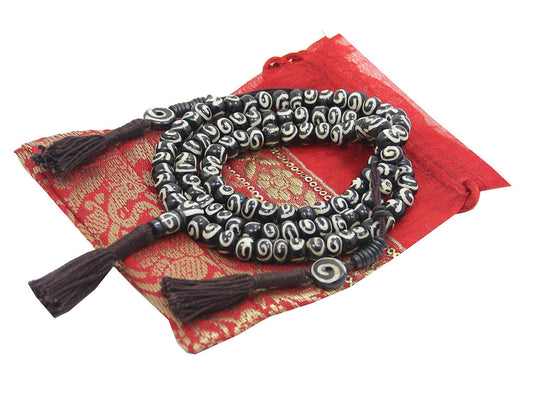 Tibetan Buddhist Spiral Mala Necklace 108 Yak Bone Beads Counter Free Silk Pouch