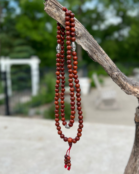Tibetan Carnelian 108 Beads Mala Meditation Yoga With 3 Marker and Guru Bead With Free Silk Mala Pouch