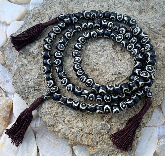 Tibetan DZI 108 Beads Bone Mala With Counter For Meditation and Yoga