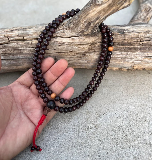 Natural Rosewood Mala / Rosary 108 Beads / Matching Guru Bead / Free Silk Pouch
