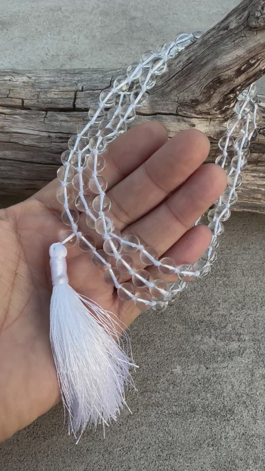 Natural Himalayan Crystal Hand Knotted Mala, Rosary 108 Beads, Japa Mala, Meditation Mala, Mala Necklace, Free Silk Pouch