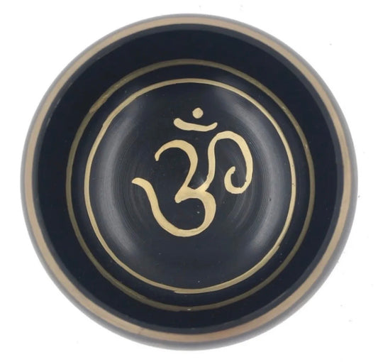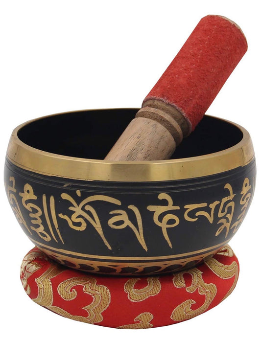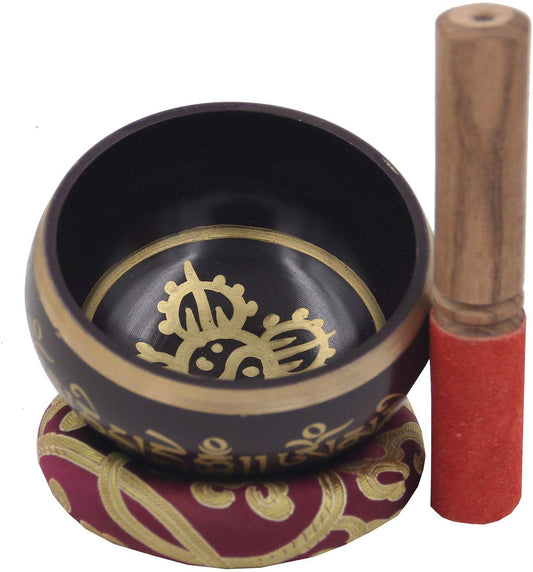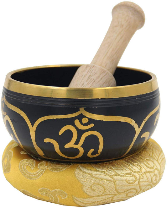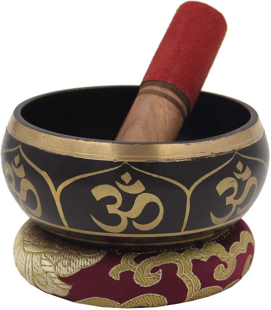 Tibetan OM Singing Bowl Set ~ With Mallet, Brocade Cushion & Carry Bag ~ For Meditation, Chakra Healing, Prayer, Yoga
