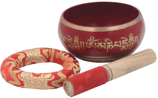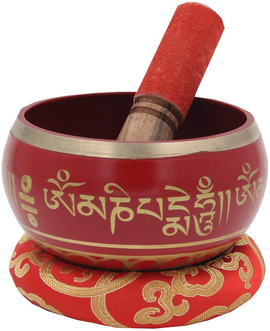 Tibetan Meditation Om Mani Padme Hum Peace Singing Bowl Complete Set (X-Large, Red)