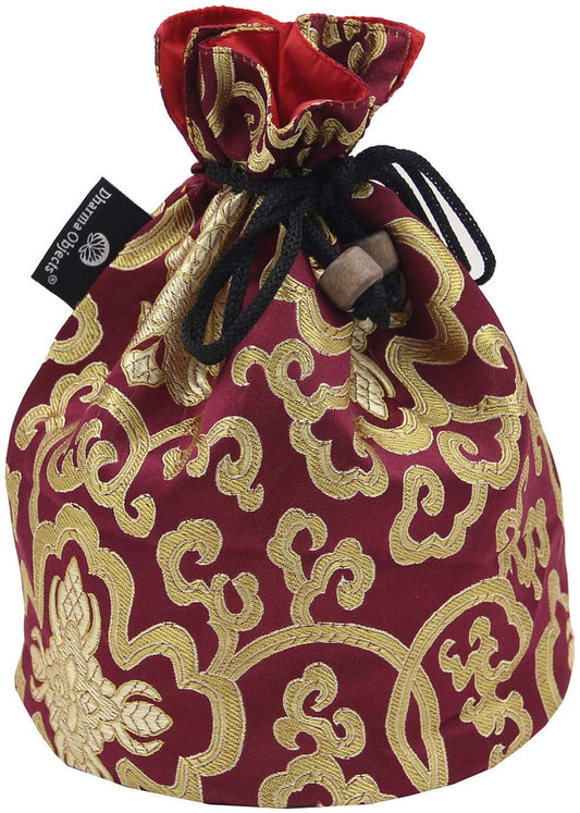 Large ~ Tibetan OM MANI Singing Bowl Set ~ With Mallet, Brocade Cushion & Carry Bag ~ For Meditation, Chakra Healing, Prayer, Yoga (Red)