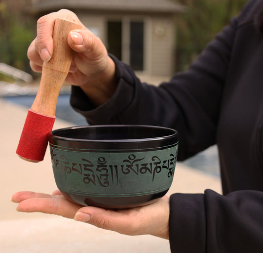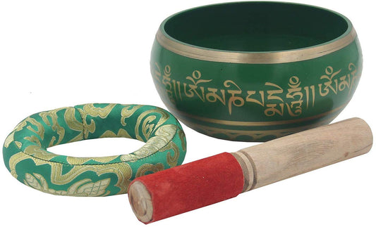 Tibetan Meditation Om Mani Padme Hum Singing Bowl Complete Set (X-Large, Green)