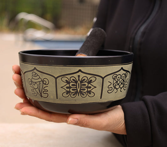 Tibetan Extra Large Heavy Meditation OM Peace Singing Bowl With Mallet and Silk Cushion