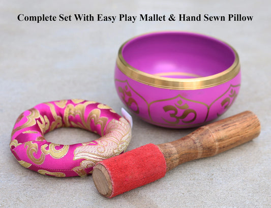Tibetan Singing Bowl Complete Set Hindu Yoga OM With Mallet and Cushion ~ For Meditation, Chakra Healing, Prayer, Yoga