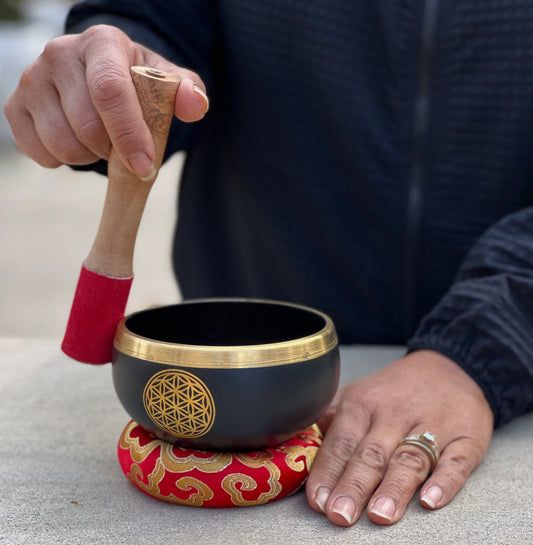 Tibetan Singing Bowl Flower Of Life Complete Set ~ For Meditation, Yoga, Spiritual Healing and Mindfulness ~ Medium ~ FAST SHIPPING!!!