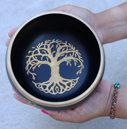 Tibetan Tree Of Life Singing Bowl Complete Set ~ Meditation , Yoga, Mindfulness, Spiritual & Chakra Healing ~ Extra Large