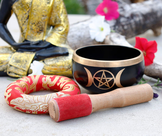 Tibetan Singing Bowl Triple Moon Complete Set ~ For Meditation, Yoga, Spiritual Healing and Mindfulness ~ Medium