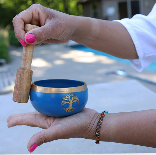 Tibetan Tree Of Life Singing Bowl Mallet Cushion Set ~ For Meditation, Yoga, Spiritual Healing and Mindfulness