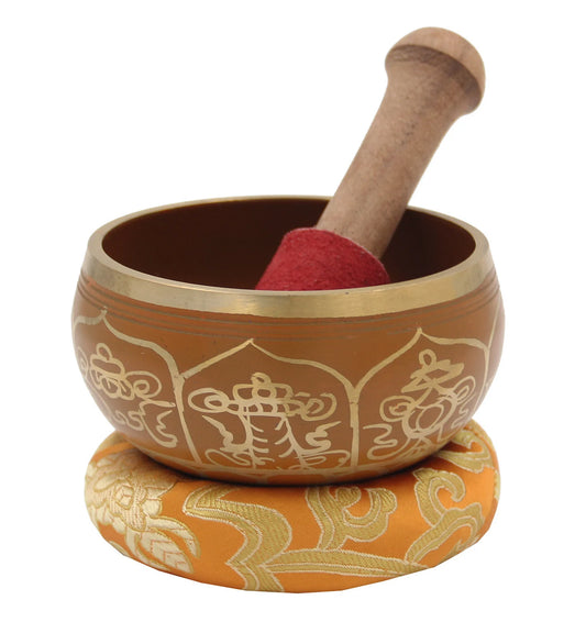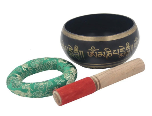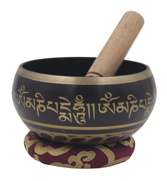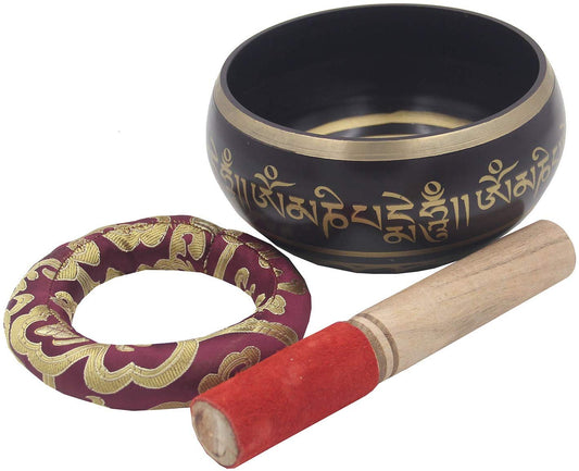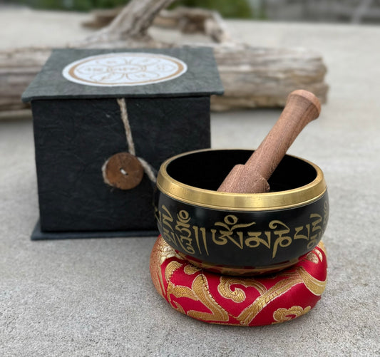 Tibetan Complete Singing Bowl Gift Box Set with OM Mani Padme Hum Etched Bowl