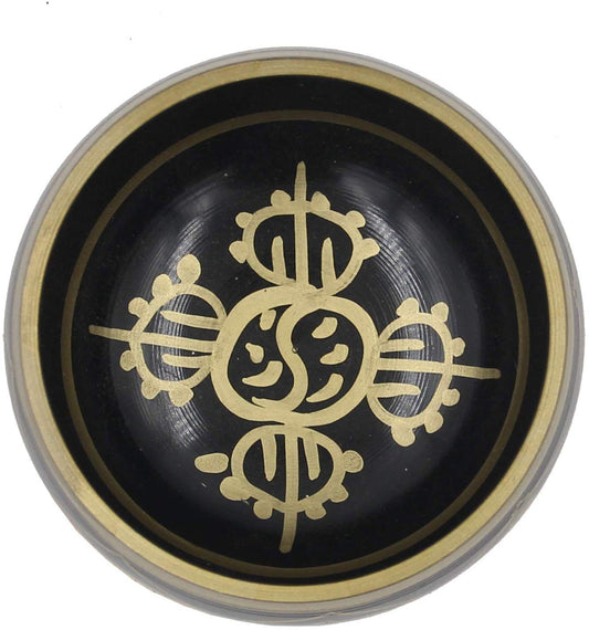 Tibetan 8 Lucky Symbol Singing Bowl Set ~ With Mallet, Brocade Cushion & Carry Bag ~ For Meditation, Chakra Healing, Prayer, Yoga (Eight Lucky Symbol, Black)