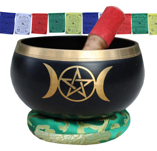 FAST SHIPPING!!! Tibetan Triple Moon Singing Bowl Complete Set ~ Meditation , Yoga, Mindfulness, Spiritual & Chakra Healing ~ Extra Large