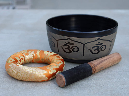 Fast Shipping!!! Tibetan Singing Bowl Complete Set Om Mantra With Mallet and Cushion ~ For Meditation, Chakra Healing, Prayer, Yoga