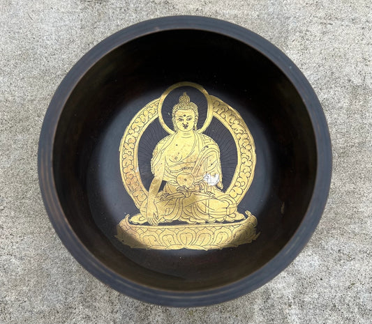 Tibetan Buddhist Buddha Singing Bowl - Collector Dark Patina 6.75 Inches Heart Chakra