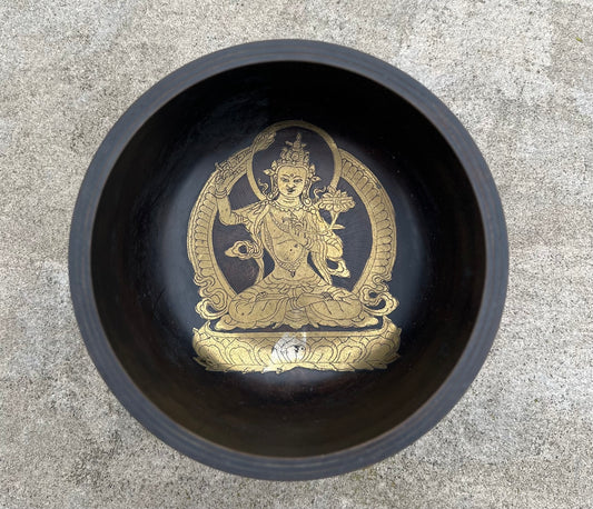 Tibetan Buddhist Manjushri God Of Wisdom Singing Bowl - Collector Dark Patina 6.75 Inches Heart Chakra