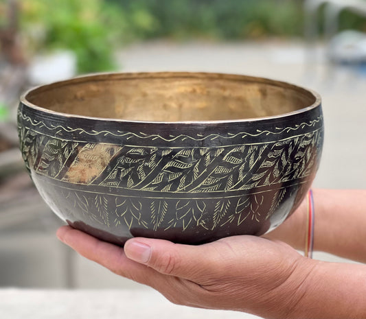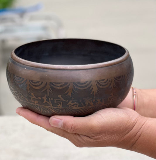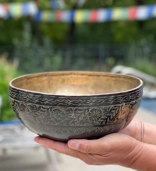 Old Engraved Rare Tibetan Singing Bowl - Collector 9 Inches Sacral Chakra