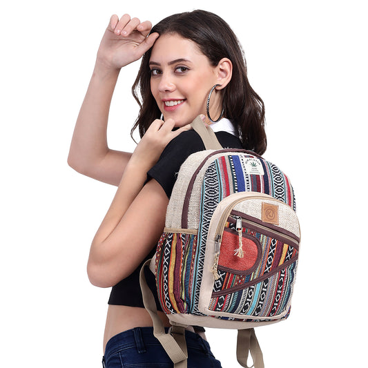 KayJayStyles Handmade Natural Hemp Nepal Backpack Purse for Women & Girls Small Lightweight Daypack