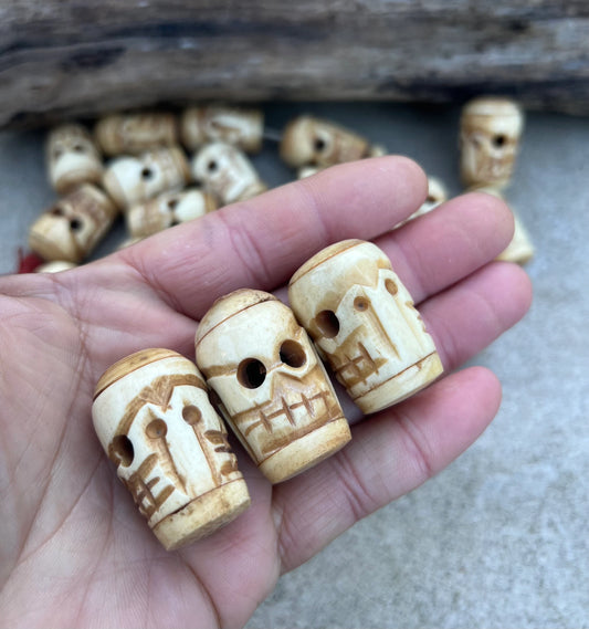 Skull Extra Large Water Buffalo Bone Beads Hand Carved.