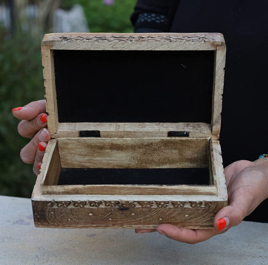 Hand Carved Jewelry Trinket Keepsake Wooden Storage Box (Large, Flower of Life)