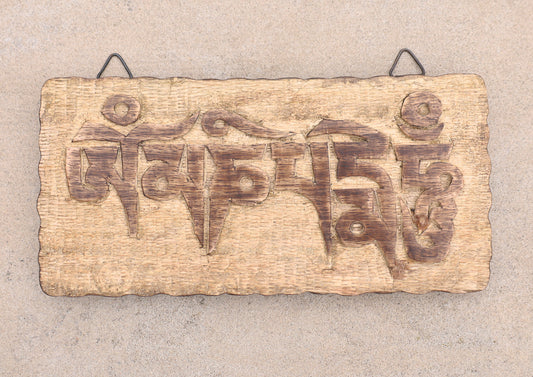 Tibetan Hand Carved Wooden Om Mani Padme Hum Mantra Plaque Wall Decoration