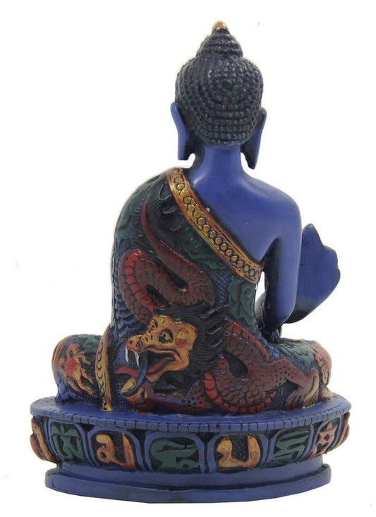 Tibetan Healing Medicine Buddha Statue Hand Painted Nepal 5” Tall