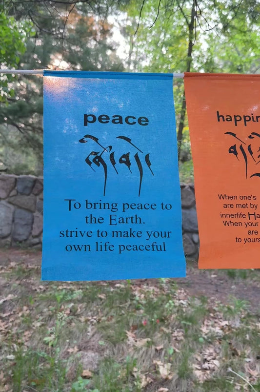 Handmade Tibetan Affirmation Prayer Flags - Peace, Happiness, Courage, Love, Tranquility, Wisdom