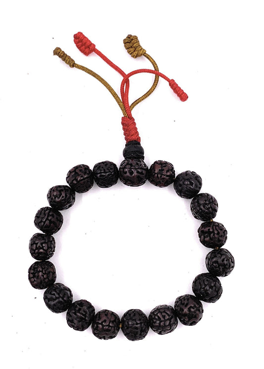 Dark Color Rudraksha 18 Beads Wrist Mala Bracelets Multi Color Tassel Free Pouch