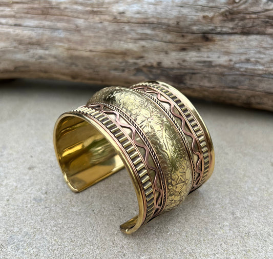 Handcrafted Cuff Bracelet Vintage Floral Design Boho Gypsy Ethnic Jewelry