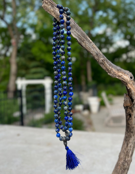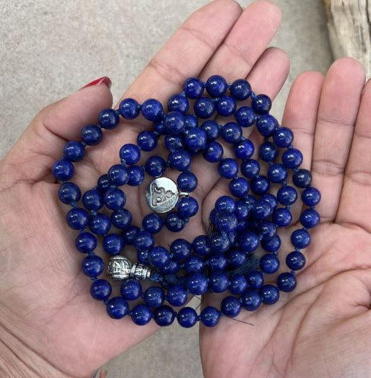 Gemstone Lotus Charm Lapis Lazuli 108 Beads Prayer Mala
