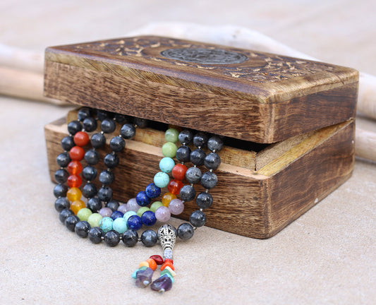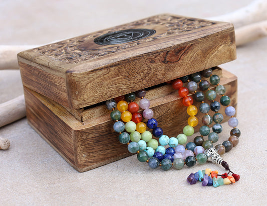Gemstone Agate Chakra 108 Beads Prayer Mala With Box