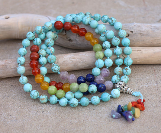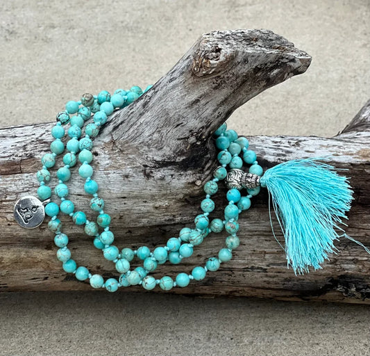 Turquoise 108 Beads Knotted Mala Prayer Meditation Yoga Chakra With Free Wooden Gift Box - Fast Shipping