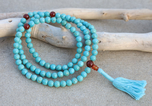 Tibetan Turquoise Mala / Rosary 108 Beads Coral Markers / Free Mala Box