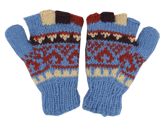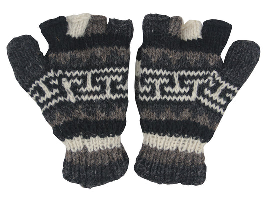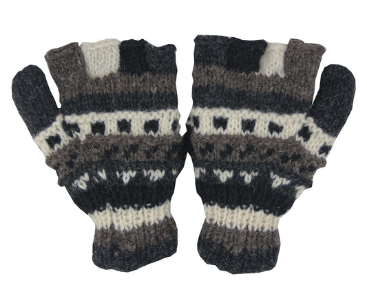Hand Knit 100% Wool Convertible Finger less Mittens Glove Nepal