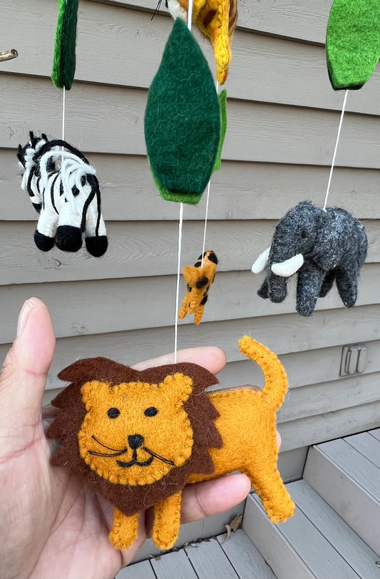 Safari baby mobile , Felt hanging baby mobile zebra, giraffe, elephant, lion, tiger Jungle animals mobile