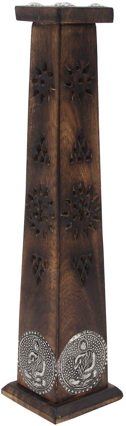 Wooden Artisan Decor Table Top Incense Stick Holder Burner Tower Stand (Blessing)