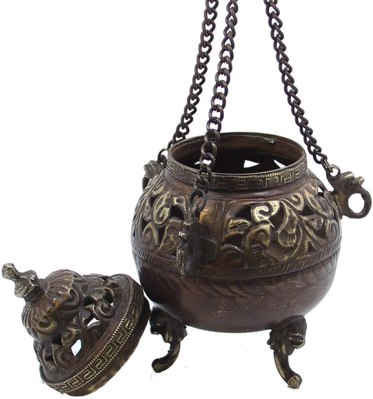 Tibetan Traditional Hanging Incense Burner Copper 6.5" High