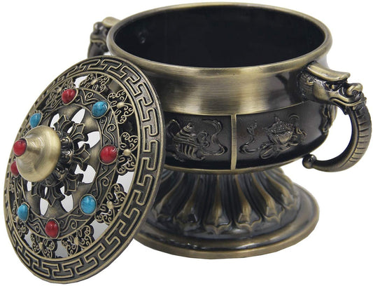 Premium Tibetan Plate Incense Burner Holder Made from Recycled Aluminum 3 in 1.