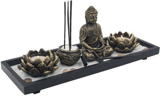 Mini Zen Garden Buddha Statue Candle and Incense Holder Complete Set Home Décor Gift