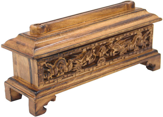 Hand Crafted Tibetan Buddhist Temple Solid Wooden Premium Incense Burner with Storage (Large)