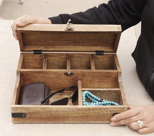 Rustic Wooden 7 Slots Bedside Phone, Watch & Valet Organizer Keepsake Treasure Box