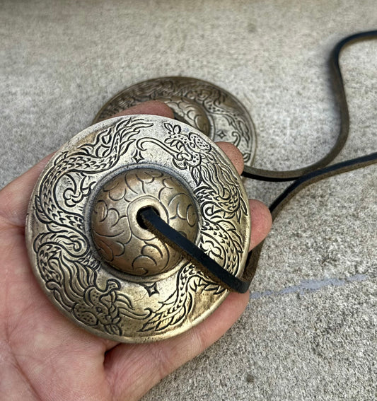 Tibetan Buddhist Meditation Yoga Dragon Tingsha Cymbal Bell Chimes With Pouch