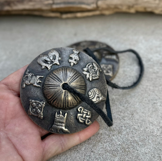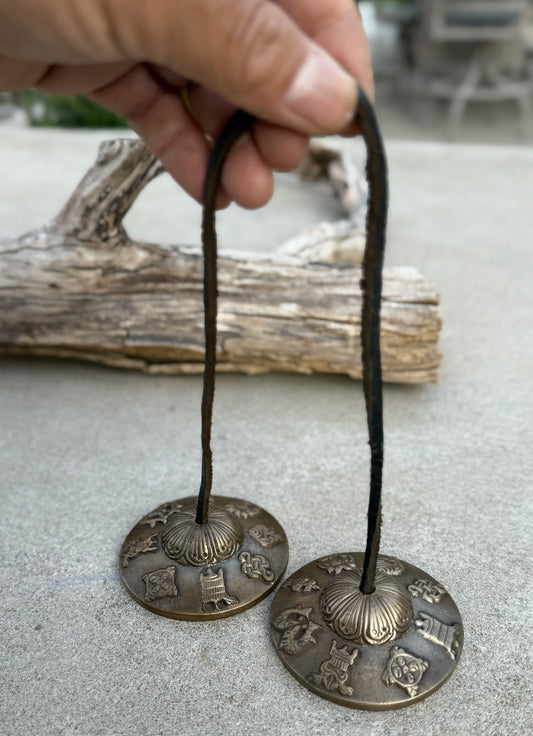 Tibetan Buddhist Meditation Yoga 8 Lucky Symbols Tingsha Cymbal Bell Chimes With Pouch